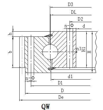| DL(mm) | D(mm) | d(mm) | H(mm) | H1(mm) | h(mm) | D1(mm) | D2(mm) | n | Φ(mm) | dm | b(mm) | M(mm) | De(mm) | Z | ||